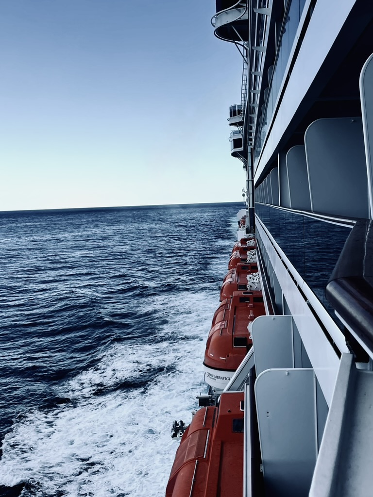 2024— There's something mysterious about the ocean and a giant ship carrying thousands of people... The cruise ship drifts just 3 kilometers off coast, yet it feels like we are worlds away, suspended between the familiar shores and the great unknown.